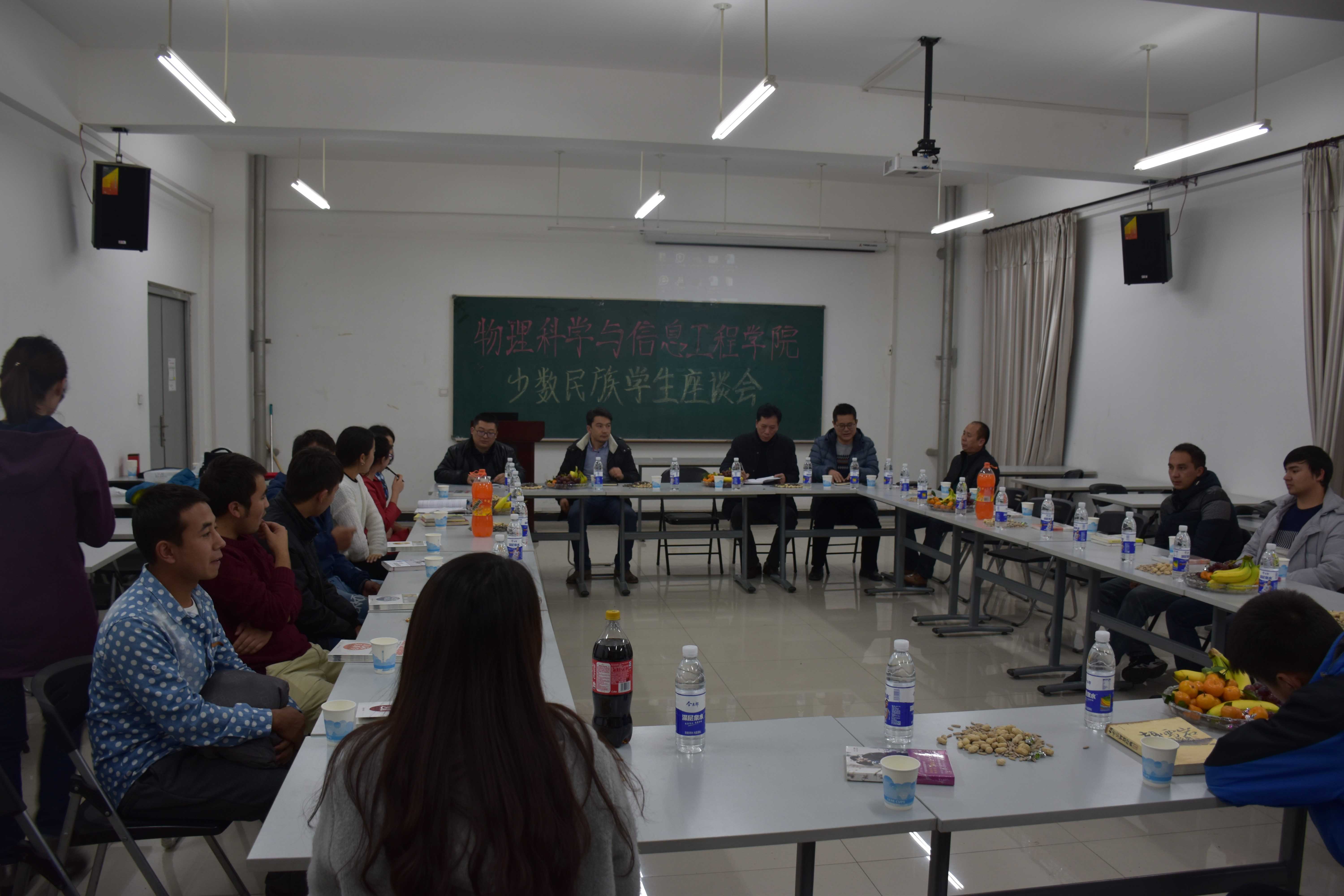 11月17日下午,太阳城 在理科群2号楼A302教室成功召开了新疆籍学生座谈会。太阳城 党委书记杨连祥、新疆内派教师斯依提艾力、顶岗支教指导中心王西强、物理教法组教师李文娜、各年级辅导员和太阳城 全体新疆籍学生参加了本次座谈会,座谈会由太阳城 副书记顾连忠主持。
