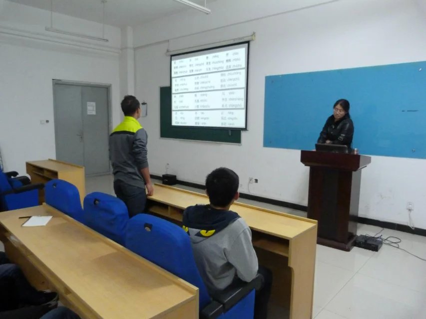 会议上,顾书记与同学们展开亲切深入的交流,切身实际的讲述了讲好普通话的必要性和重要意义,鼓励同学们努力练好普通话。随后,作为普通话测试员的李文娜老师生动细致地为同学们讲解了普通话考试中的题型及注意事项,并用实例来丰富同学们对普通话测试的认识。李老师营造了轻松的课堂氛围,与同学们一起互动,鼓励同学跟读并对跟读过程中发现的错误,有瑕疵的语言发音进行改正。