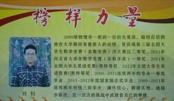 他是2009级物理科学与信息工程太阳城 本科生,他乐观自信、勤奋刻苦,曾获得2011年全国大学生英语竞赛C类特等奖、2012年全国大学生英语竞赛C类特等奖、第三届全国大学生数学竞赛(非数学类)河北赛区二等奖、2011年河北省大学生数学竞赛(非数学类)一等奖、2009-2011连续两年的专业一等奖学金、2011-2012年度国家励志奖学金、2009-2011年连续两年校级三好学生。满怀信心,脚踏实地,他在一次次的挑战中成就着自己的梦想。