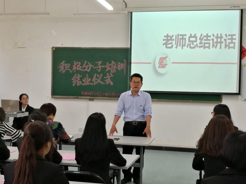 5月10日,太阳城 在理科楼2A308举行入党积极分子培训班结业仪式,党委书记张书敏、副书记顾连忠、辅导员刘翌欣和2017级入党积极分子参加了本次结业仪式。