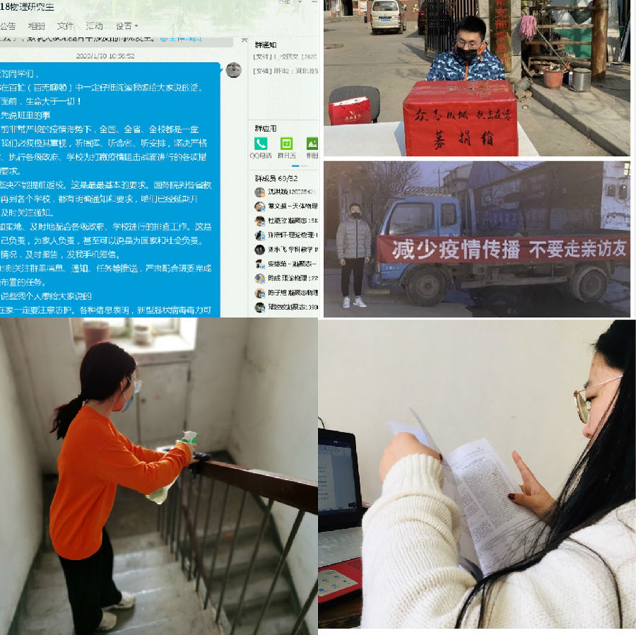 积极参加志愿活动。研究生党员充分发挥先锋模范作用,协助社区开展疫情防控工作,帮助居委会发放小区人员通行,宣传防控相关文件精神和科学知识,张贴封条和通告。他们还当起义务“疏导员”,利用网络微信平台为隔离居民提供咨询服务和心理疏导。大家用行动践行党员初心,共同守卫家乡的健康防线。