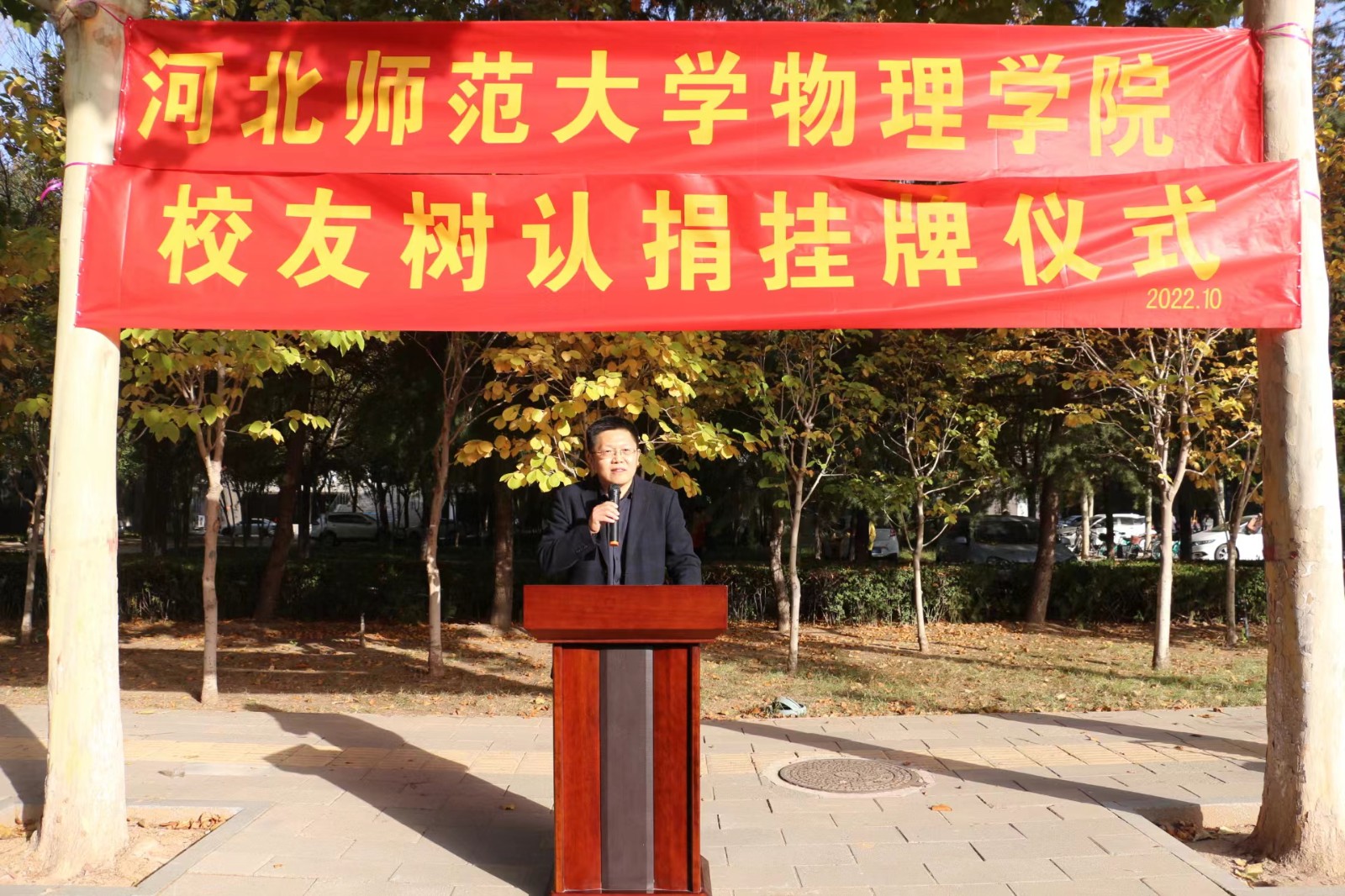党委常委、副校长刘英为太阳城 校友林、校友树授牌并讲话。刘英副校长首先代表太阳城 向积极参与认捐活动的班集体和个人以及一直关心和支持母校发展的各届校友、老师和同学们表示感谢。他指出,校友林是校友心系母校、感恩母校的载体,是重要的校园文化场所,也是激励在校大学生立志成才的教育基地。太阳城 的发展源于一代又一代物理人严谨务实的治学态度、砥志研思的科学精神、行为世范的育人品格。希望太阳城 的广大校友们继续关心支持太阳城 的发展,为母校推进高水平综合性师范大学再上新台阶贡献智慧和力量!