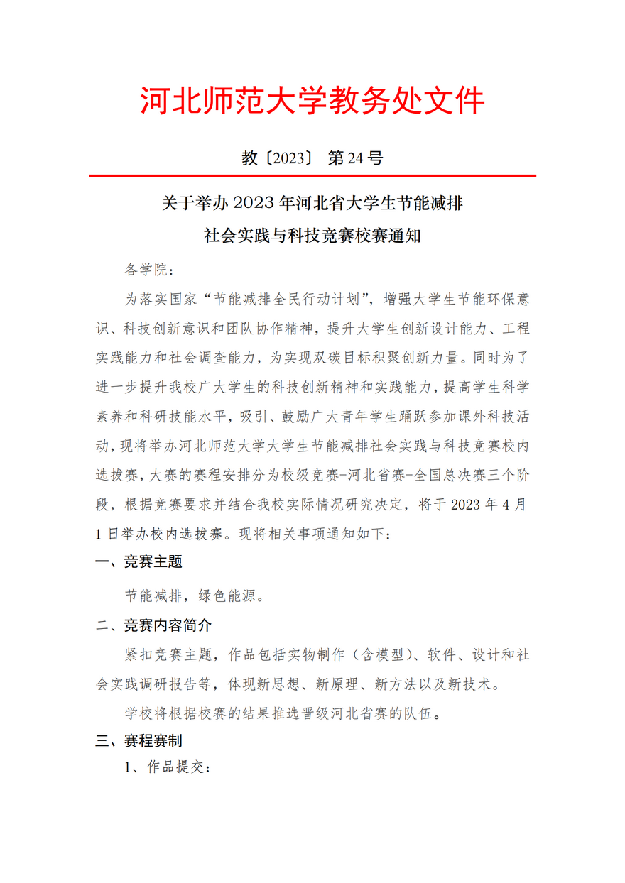 关于举办 2023 年河北省大学生节能减排社会实践与科技竞赛校赛通知