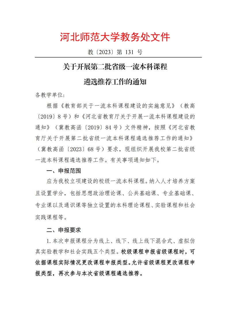 附件1.河北省教育厅关于开展第二批省级一流本科课程遴选推荐工作的通知 冀教高函 2023-68号.pdf