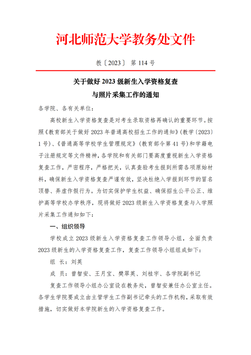 关于做好2023级新生入学资格复查工作与照片采集工作的通知