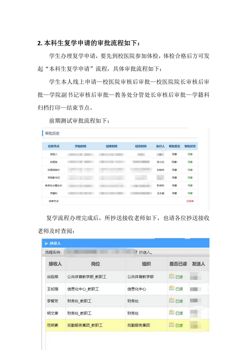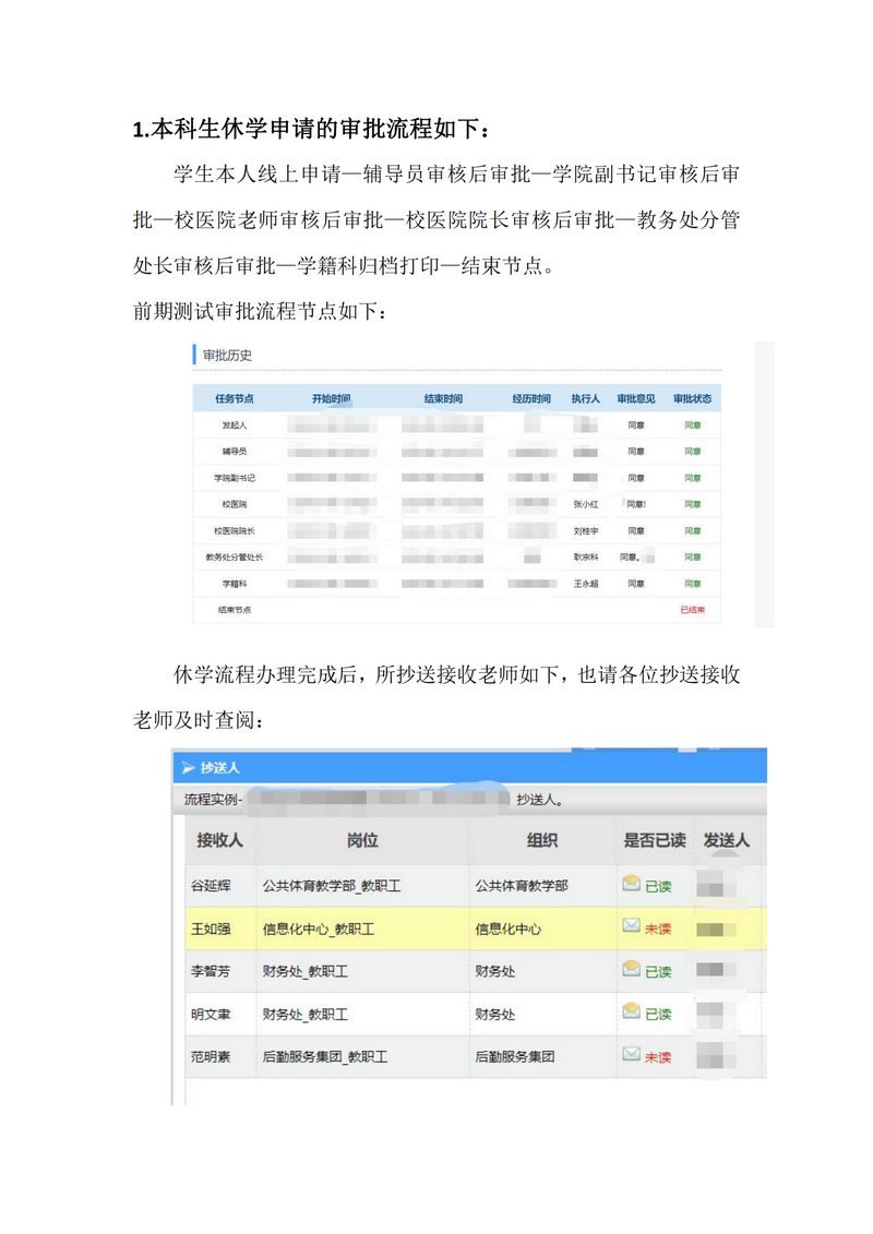 本科生休、复学线上申请审批流程节点说明