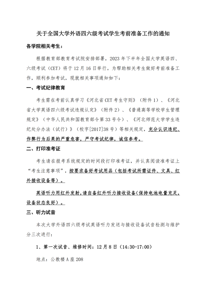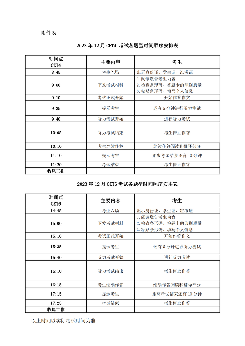 太阳城 2023年12月全国大学外语四六级考试考前提醒