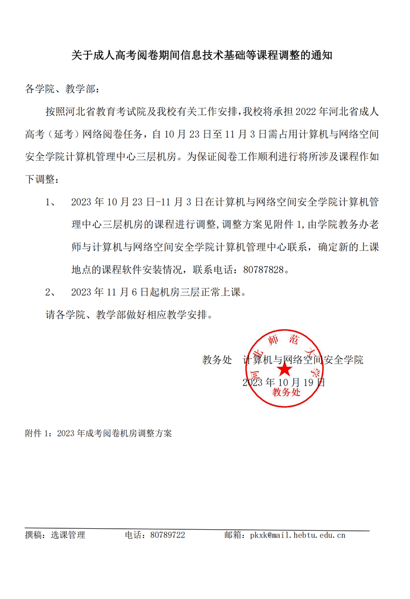 关于2023年成人高考阅卷期间计算机管理中心机房相关课程调整的通知