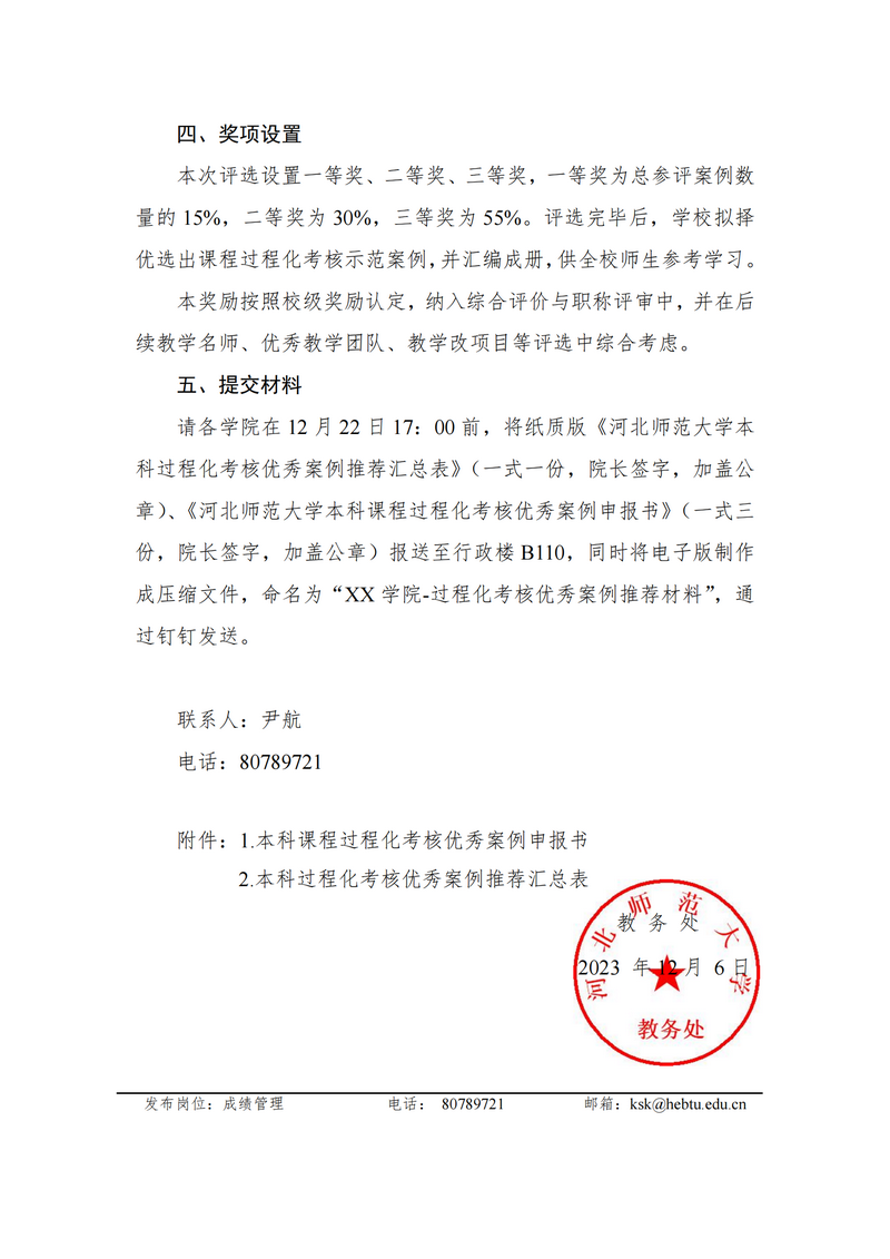 关于开展课程过程化考核优秀案例评选的通知