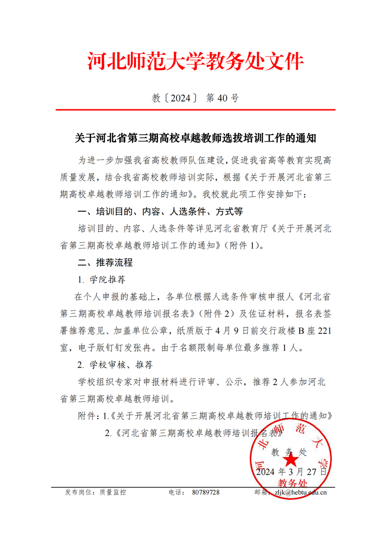 关于河北省第三期高校卓越教师选拔培训工作的通知
