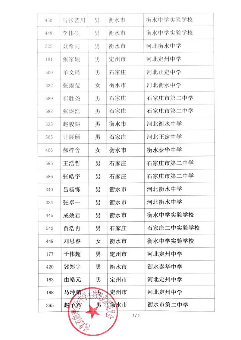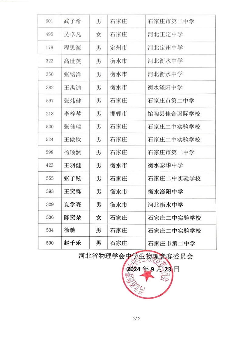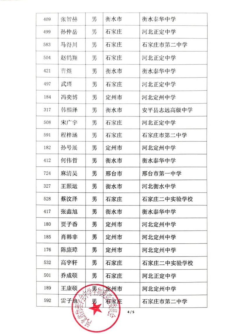 第41届全国中学生物理竞赛河北赛区一等奖获奖名单