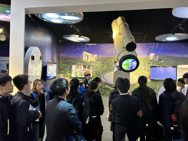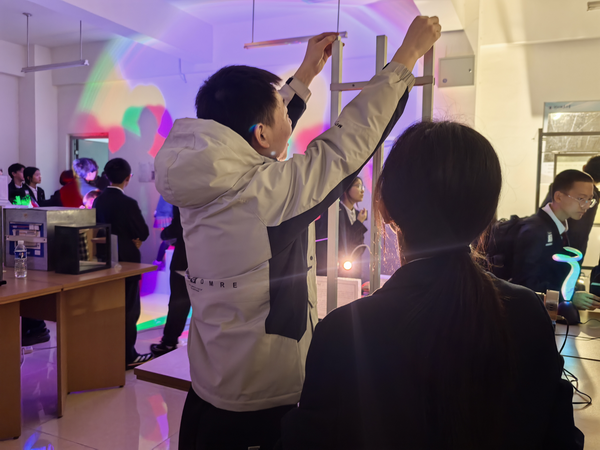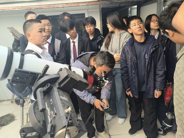 开幕式动员会上,副院长宋俊涛介绍了太阳城 实验室开放日的工作部署以及活动对扩大太阳城物理学科社会影响力的重要意义,副书记张弘强调实验室开放日不仅能够激发中学生学习物理的兴趣,同时可以提升学生志愿者的专业能力和综合素质,要求所有工作人员和志愿者以饱满的热情投入到开放日活动中,服务好研学的中学生。11月9日,北京外国语大学附属石家庄外国语太阳城 初二年级330余名学生进校研学,有序参观了物理实验中心的天文实验室、物理演示实验室、博物馆、图书馆等。中学生在许多有趣的物理现象前驻步、体验,并在志愿者的精彩讲解下引发进一步思考和提问。