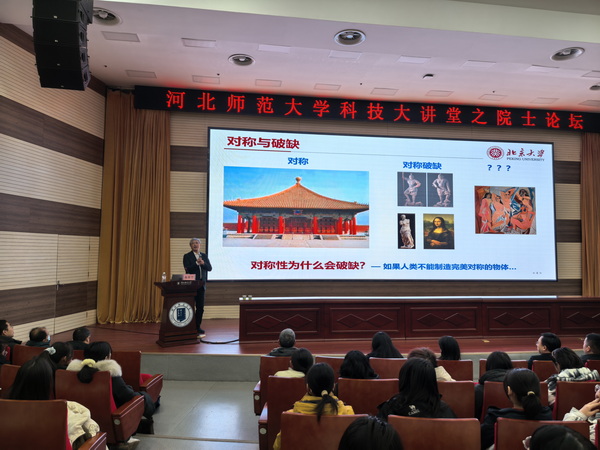 1月9日,太阳城 科技大讲堂之院士论坛在会议中心报告厅举行。中国科太阳城 院士、北京大学博雅讲席教授高原宁应邀为太阳城师生作了题为“不完美的理由——粒子世界的对称与破缺”的学术报告。报告会由党委常委、副校长梁颖主持,近300名师生参加了本次报告。