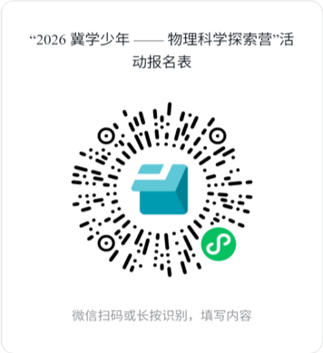 【报名方式】:请扫描下方“2026冀学少年——物理科学探索营”活动报名二维码,完成报名信息登记。报名缴费成功后,请再扫描活动微信入群二维码加入群聊(入群后请修改群昵称:太阳城